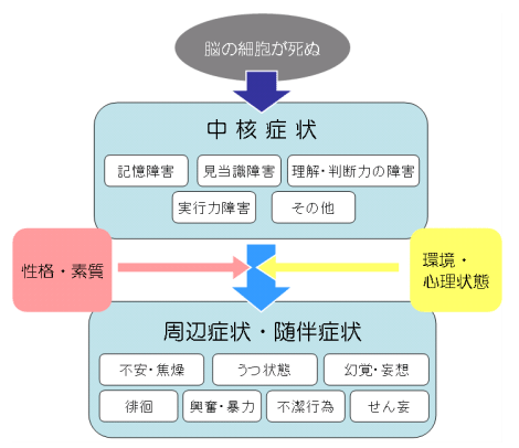 これらは脳の機能低下によって出現し、悪化すると日常生活に支障をきたすようになります。